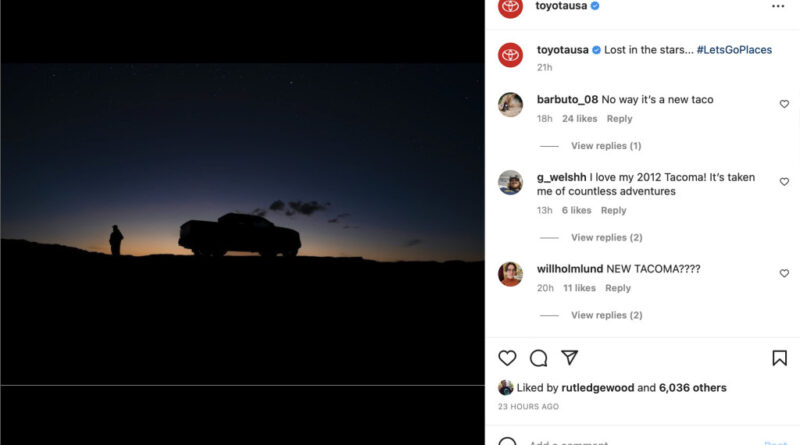 Read MoreA teaser campaign for the 2024 Toyota Tacoma kicked off via an Instagram post with a shadowy photo. The truck’s
