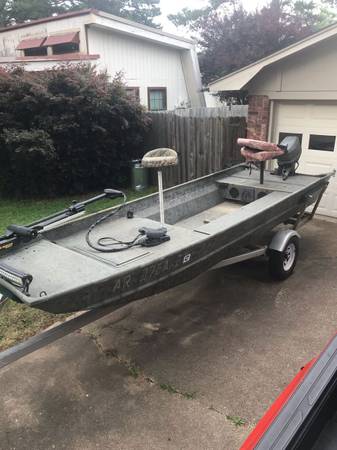 Custom riveted Lowe duck/fishing boat with electric start 25hp Evinrude 2-stroke. 45 lb thrust Minn Kota Edge. LED light bar, navigation lights and LED interior lights. Garmin Striker ClearVu with two sealed lead acid batteries. New bilge pump. Two deep cycle batteries.