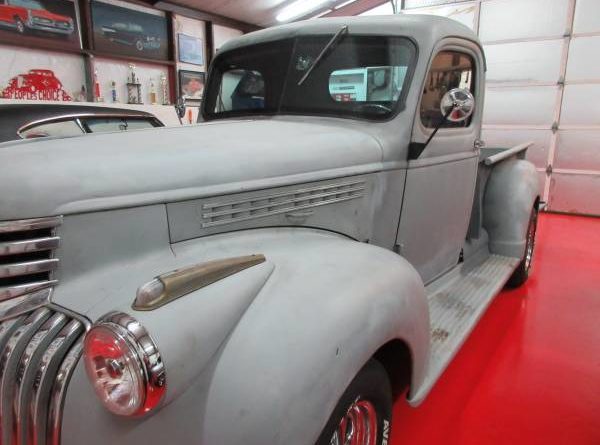 A great 1946 Chevy Pickup for sale. 350 engine, 700R4 transmission – just completely rebuilt. Disc brakes on front, drums on back. under dash air conditioning, power steering. All new glass, 1955 rear end. 355 gears, new steering column.