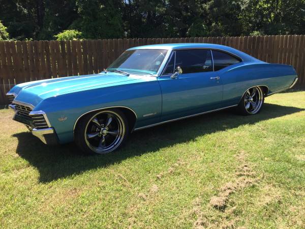 Extremely clean car! Friend of mine owned this car for over 15 years. Car originally sold in Nevada. Super solid car. As far as I know it has only lived in Nevada and Texas. Very slick Marina blue that is the original color for the car. Has some chips in the hood, a few scratches and minor ding or two. Still very nice paint that is ready to show. Very nice interior. Original door panels in very good condition. Recently tinted windows and smoked tail lights. Brand new 20” black chrome American Racing wheels wrapped with Nitto tires. 20×10 on rear and 20×8 on front. I also have the original rally wheels that will go with it too. Car runs great with a mild 350 and power glide transmission. The matching number 327 is available too. Power steering that is effortless. Very nice chrome and stainless. All glass is great. Windshield looks to be original. Drive it home. Could use shocks. New coil springs in rear. Call for more info. show contact info