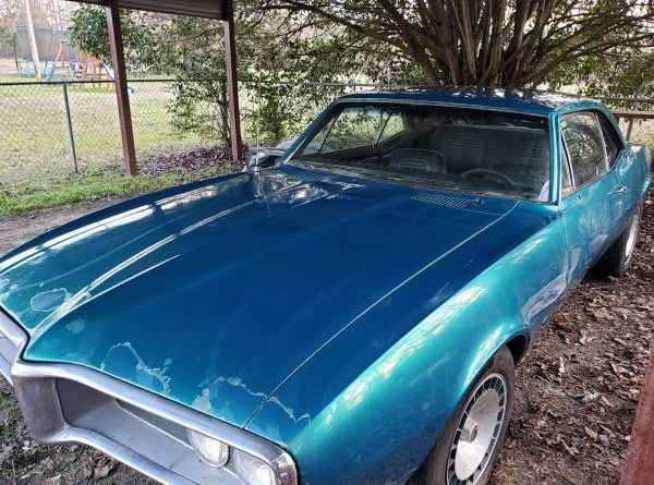 1967 Pontiac Firebird 326 with matching numbers. This car comes a 4 speed Hurst transmission, working radio, and is fitted for air conditioning. This is a great project car with little needing to be done. I originally had this car to use as a daily but my family has grown and I am needing something larger. The numbers are matching but a few modifications have been added to the engine such as a performance cam, an Edelbrock performer rpm manifold for a broad torque curve, and a carburetor to fit. The engine is straight piped and dumps right behind the rear wheels which gives the lope from the cam a great sound. The original paint was regimental red but had since been given a unique iguana green which changes to a deep blue based on your viewpoint. The paint is not show quality but is still a beautiful aspect of the car. The seats have been recently redone and are in great condition. The floor plan will need to be replaced as the foot wells are rusted and I was currently in the process of replacing the overhead upholstery. I currently have the exterior trim on hand but have not added it all to the car. The reader windshield of the car is missing due to a late night cruise with a lead foot. While climbing through the gears, the rear glass popped out and shattered on the road behind us. Little odds and ends stuff is being to be done with the interior and I have new emblems for the exterior that will go with the car as well. Original Listing