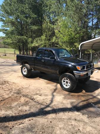 1996 Toyota Tacoma with the big 4 cylinder, 2.7l. 4×4 works. 190,800 miles. Manual 5 speed transmission. New Cooper Mud Tires. Just replaced the valve cover gasket and spark plugs and wires. Needs work on the power steering but I haven’t fixed it because it doesn’t bother me to not have power steering. AC has a leak. Other than that it’s a great truck. It’s my daily driver, but I need something just a little bigger. Clean Texas title in hand. Cash or trade for a truck! Also have a camper she painted flat black, just needs washed! Message or text. show contact info