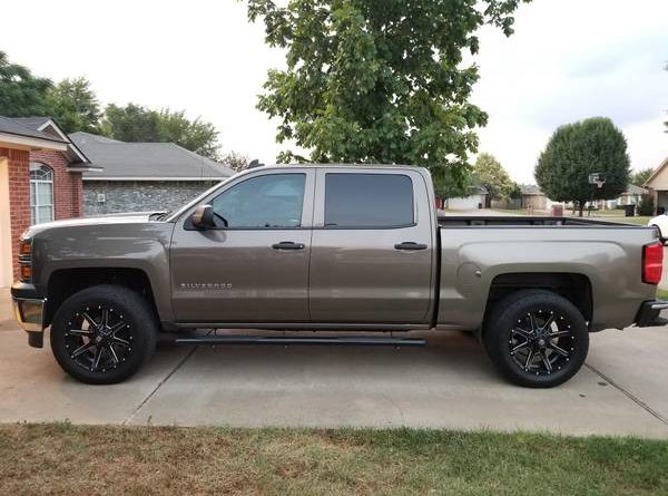 For sale 2015 Chevy Silverado Crew Cab(4 complete doors) $23,000obo. Clean interior and exterior. It has Bluetooth, Navigation, Pandora, OnStar, and towing. It has 20×9 Razorback Wheels with All Terrains. 1 owner. Smoke free. Message with any other questions you might have. Original Listing