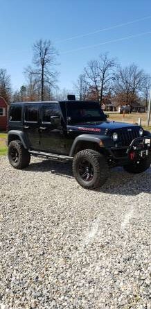This is a very clean Jeep! It has Custom Leather that is Red/Black, Heated front seats, 4″ suspension lift, 35″ Nito Tires, Ballistic Red/Black Rims with matching spare, Aftermarket Step Bars, Tinted windows, Brand NEW Rancho shocks and steering stabilizer, Aftermarket Front Bumper with 9500 pound Winch, Aftermarket Speakers front & back, wired for amp & sub, LED Fog lights, LED Headlights, LED off road lights, USA Grab bar handles front & back. Towing Package.