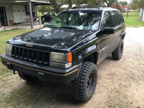 1994 Jeep Grand Cherokee Limited (ZJ). Tons of upgrades and off-road parts. Entire engine cooling system replaced last summer and the transmission was replaced at 99,000 miles. Currently has 103,252 miles. Upgrades are a 4” Rubicon Express suspension lift, Pro-Comp shocks, Core 4×4 adjustable track bar, sway bar quick disconnects, hood louvers, Maxxis Big horn 31×10.5×15 sitting on black steel wheels. Has factory leather and tow hitch. Now here’s the bad. My son just broke the transfer case so that will need to be replaced and it needs a new seal on the tranny pan. This was my play toy but I guess it’s time to give it a new home. Has been a great strong running Jeep that I have put tons of $$$ in it and I have tons of receipts for work done.With a little bit of work it will be again. Will take cash or possibly trade for a small tractor or side by side. Email with questions or offers. Original Listing