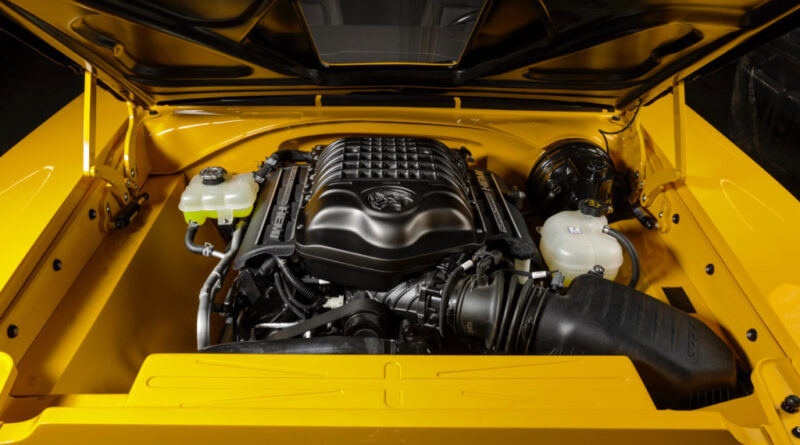 The Charger sports a Hellcat 6.2-liter supercharged V-8 crate engine producing 707 horsepower—the same number originally made by modern Hellcat muscle.