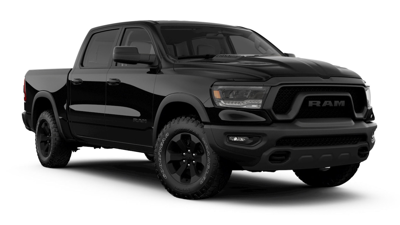 You can also get the stealth treatment on the Rebel in the form of a Black Appearance Group package. This package gets you a Diamond Black Crystal Pearl exterior with black 18-inch wheels, front spoiler, skid plate, badges, tow hooks, exhaust, and headlamp bezels. A blacked-out interior is standard, but buyers can instead opt for a black and red theme.