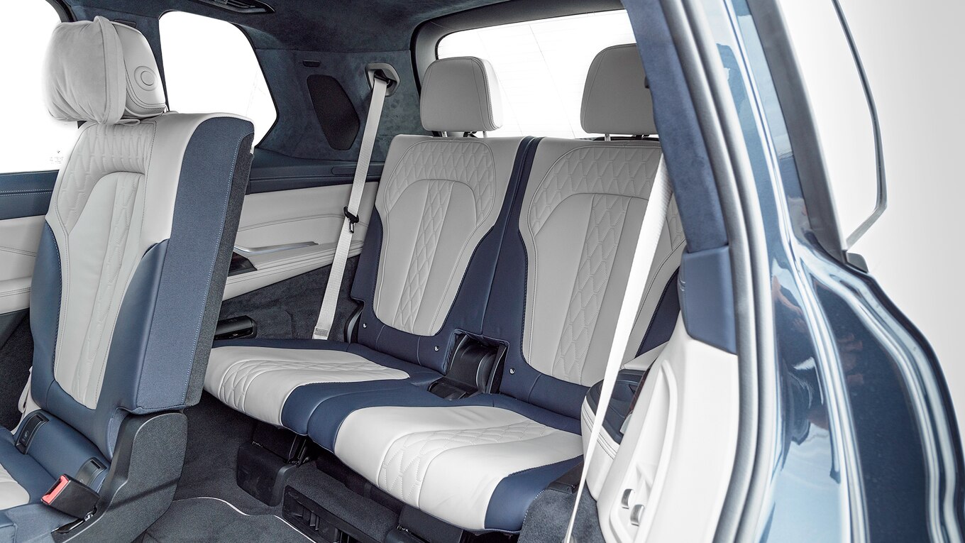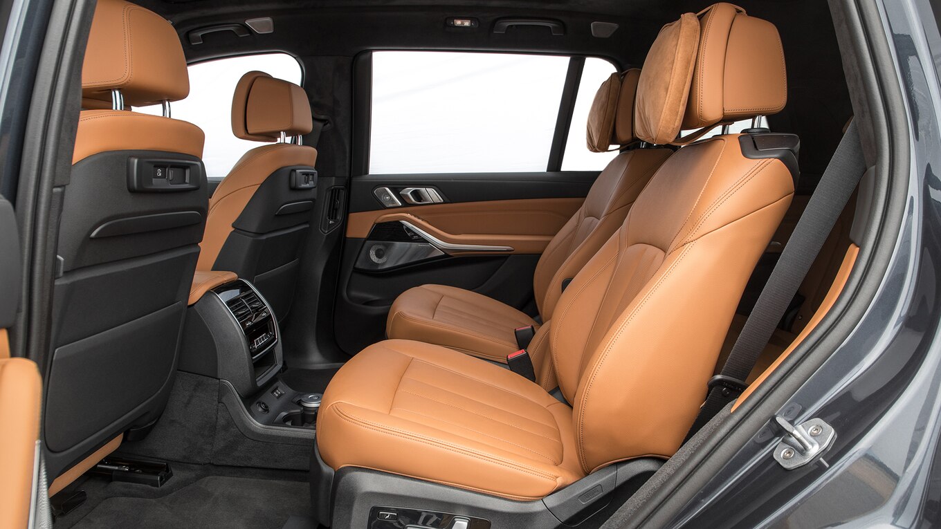 In the second row, differences between the BMW X5 and X7 start to become clear. The X5 has a conventional three-seat bench, as does the X7 as standard. Optionally available in the X7, however, are captain’s chairs, which eschew the center seat for more comfortable, luxurious thrones on either side. They’re individually adjustable, come with leather headrest pillows, and have their own armrests. The X7 puts more emphasis on comfort for passengers in the second row than the X5.