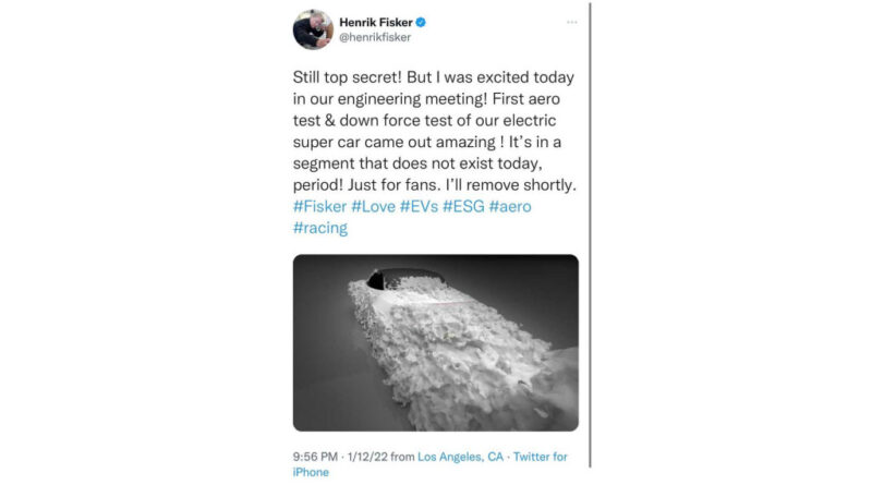 CEO and Chairman Henrik Fisker took to Twitter on Wednesday to post a teaser image showing the car during what appears to be aerodynamic modeling. The teaser was quickly removed from Twitter but not before Motor1 was able to take these screenshots.