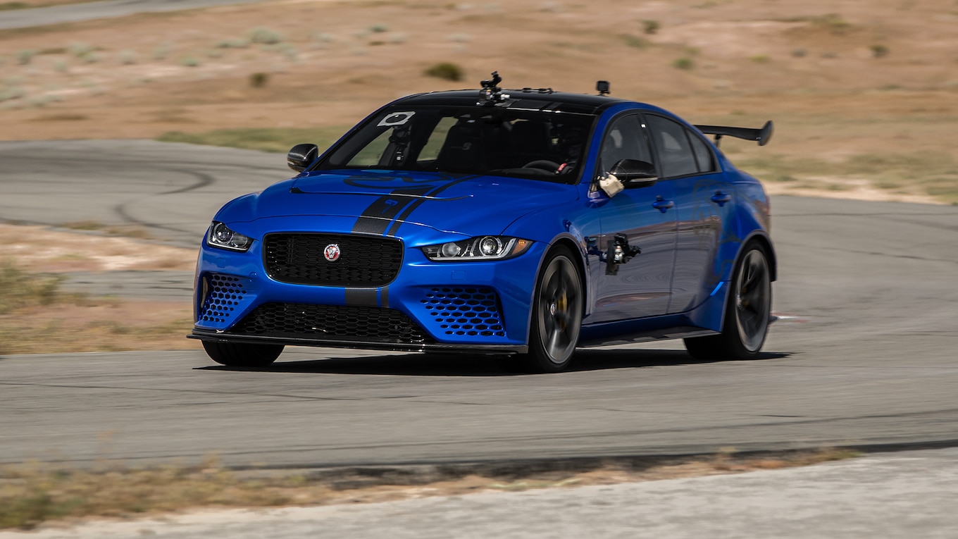 Er, was. The Alfa Romeo gave it a good go, but with “only” 505 horsepower (the weakest car we tested that day by a lot) it was no match for the 640-hp CTS-V. A 1:31.80 lap puts it ahead of the X6 M, but nearly 2 seconds off the Cadillac’s lap. The last chance belonged to Jaguar. Guess what? By the skin of its teeth, the $190K, AWD, 592-hp 2019 XE SV Project 8 put down a 1:29.59 lap, beating the CTS-V by 0.1 of one second. Boom, boom, boom. Out go the lights.