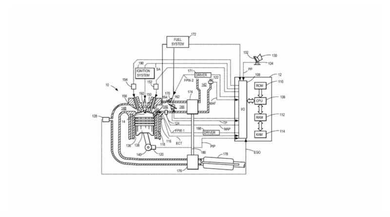 In the application, Ford also suggests a hydrogen engine could be used as part of a hybrid powertrain, with an electric motor-generator placed between the engine and transmission.