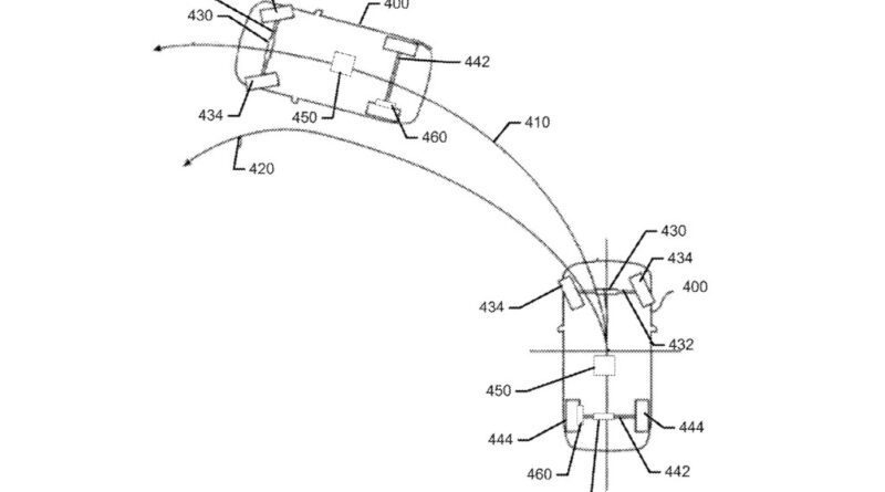 In the proposed system, an onboard controller would monitor factors like steering angle and wheel speed to determine if turning-radius reduction will be helpful. This is referred to as “turn-assist mode” in the application.