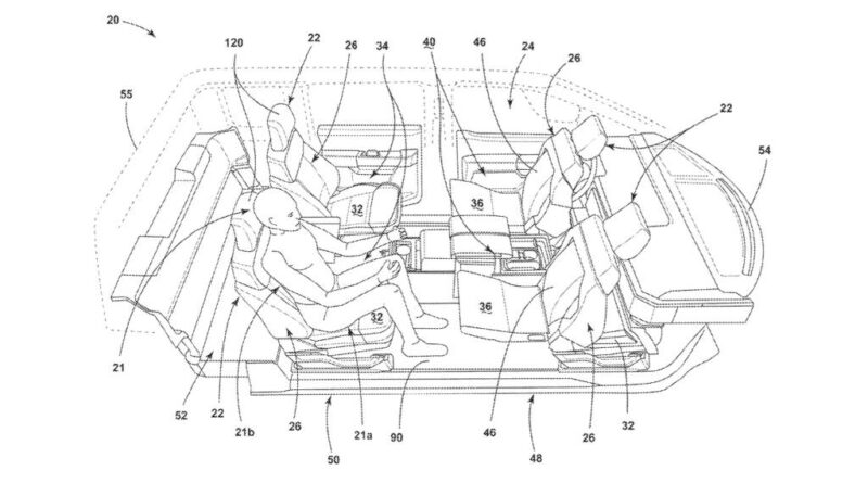 Several recent Ford patent filings reimagine pickup truck interiors.