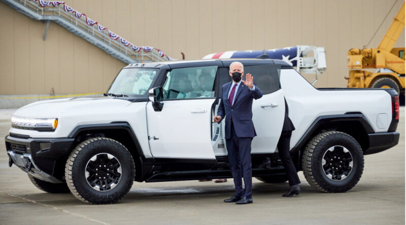 President Joe Biden with the 2022 GMC Hummer EV