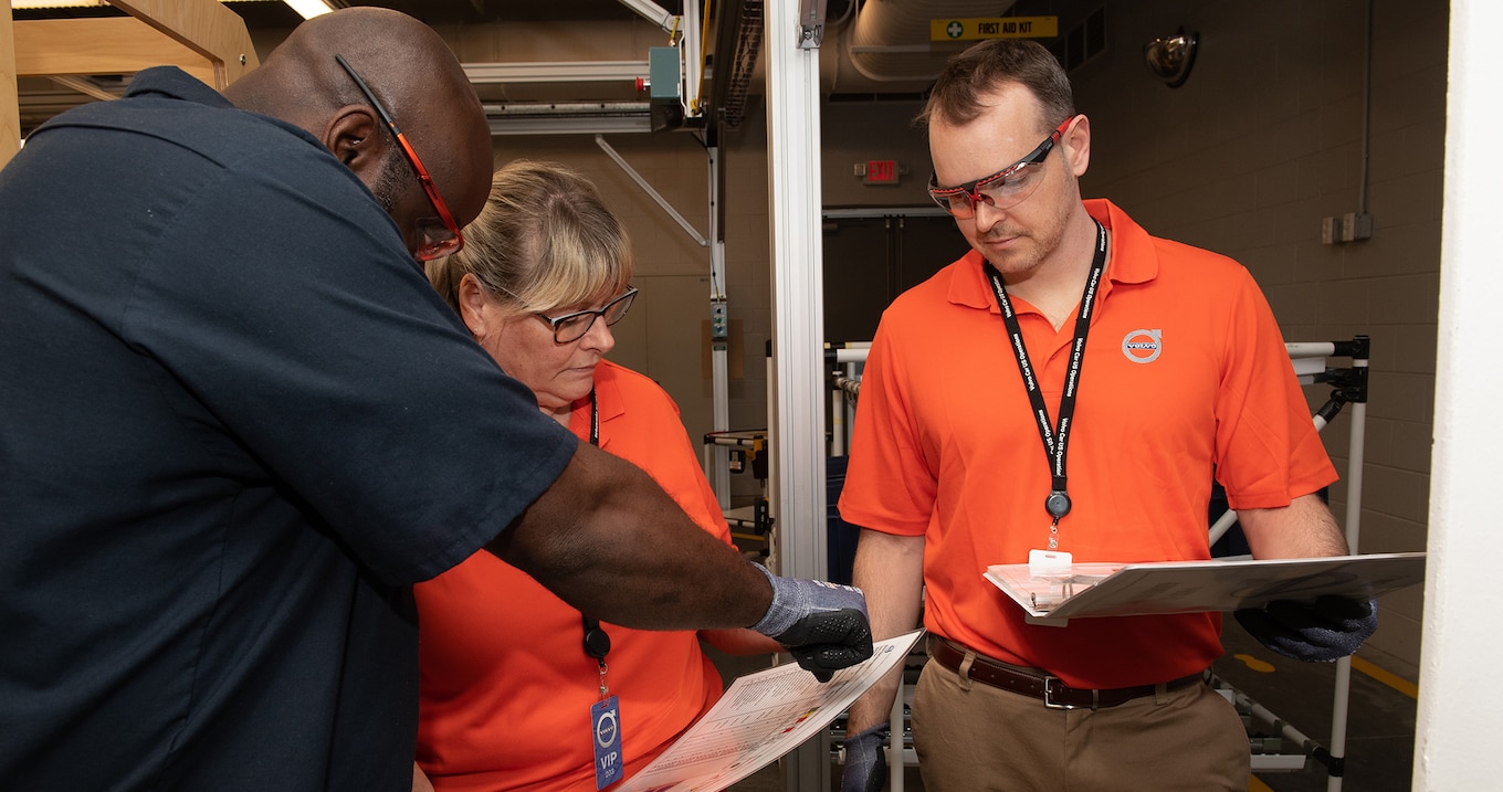 New-employee training is a weeklong exercise with a heavy emphasis on safety—this is the company that invented the three-point seatbelt in 1959, after all. There’s also a reliance on employees to standardize and improve the assembly process.