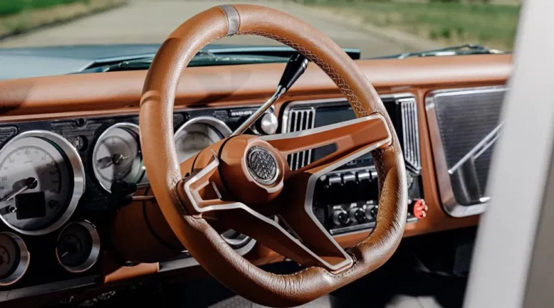 Inside, Ringbrothers lowered the floor to increase space and make room for new, more comfortable seats fabricated in-house. The dashboard incorporates Dakota Digital gauges surrounded by Ringbrothers bezels, updated climate control and audio systems, and a custom steering wheel.