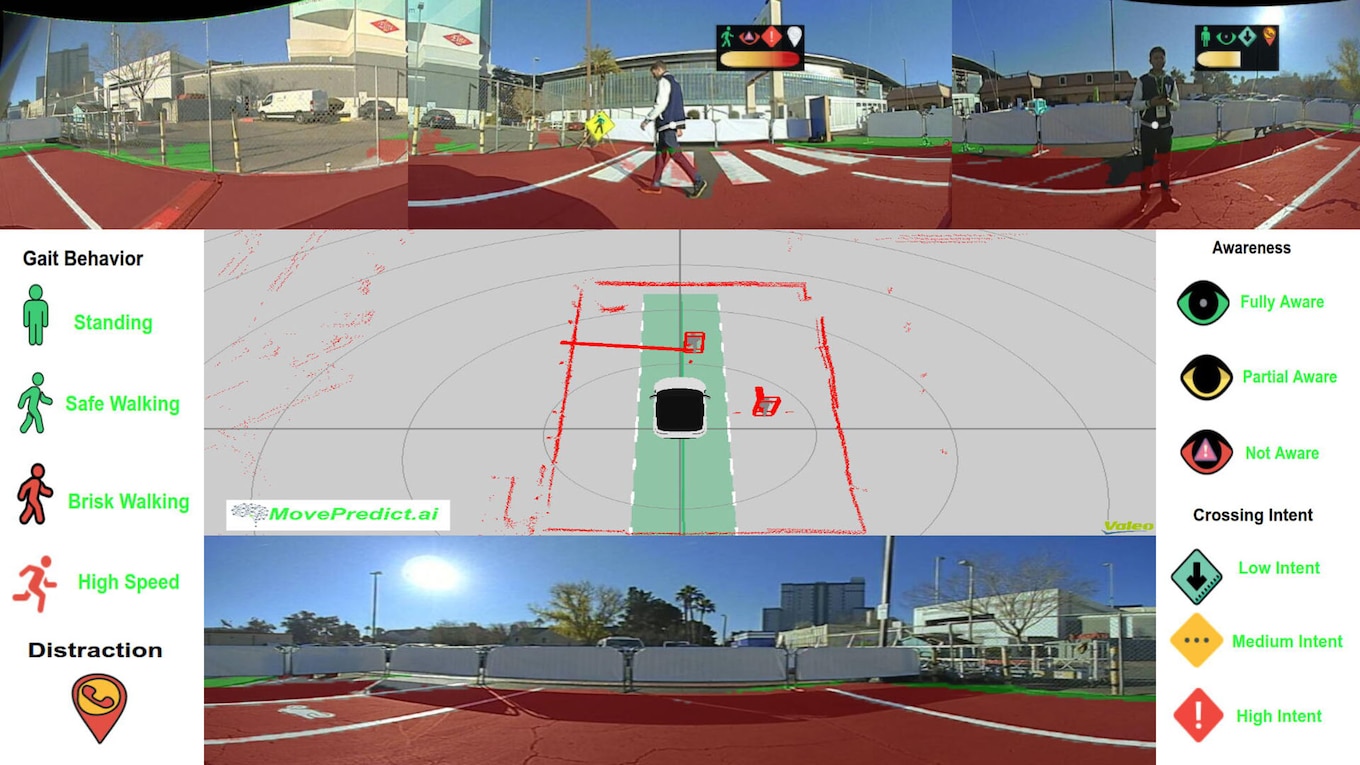 Much of the technology you’ve read about so far has to do with gathering information, but how can it be best put to use? That’s the job of Valeo’s self-descriptively-titled Move Predict.ai, which predicts the movements of pedestrians, scooters, and other slow-moving traffic around the vehicle. The system not only looks at people, but at its surroundings—crosswalks, intersections, and the like, to predict where those people might go. It also looks for indications of low attention levels, such as a pedestrian with a phone to their ear or two people walking together. We sat in the back seat watching a screen as engineers orbited the test car, talking on cell phones, rapidly changing directions or darting in front of the car, and Valeo’s system did a decent job tracking them, making assessments of their distraction level, and predicting which ones would jump in front of the car and which would keep going.