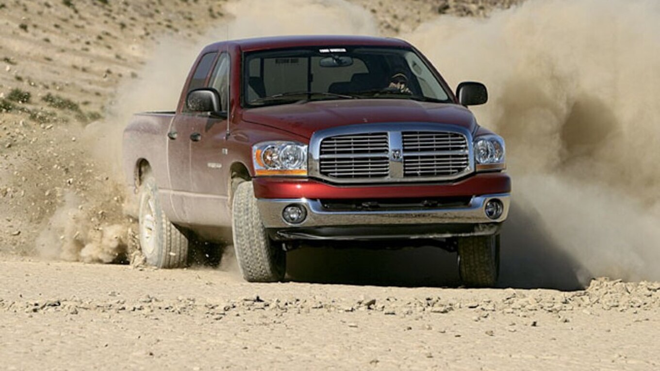 Like its smaller Dakota stablemate, the Ram 1500 added a TRX variant to the fold for the 2006 model year. Available in two-wheel-drive TRX or four-wheel-drive TRX4 forms, the truck brought 17-inch wheels wrapped in off-road tires, red monotube shocks, a body-color grille surround, and model-specific graphics to the truck. An even harder-core TRX4 Off-Road variant had sizable tow hooks, a limited-slip differential, and skid plates to protect the front suspension and four-wheel-drive system’s transfer case.