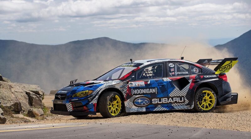 Travis Pastrana on Sunday shattered the overall record at New Hampshire’s Mt. Washington Hillclimb in the 862-hp Subaru WRX STI originally built for “Gymkhana 2020,” Subaru announced Monday.